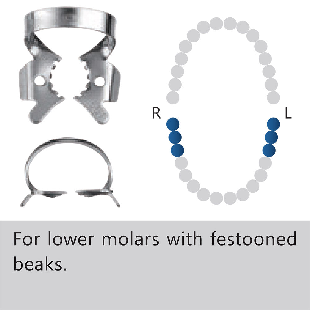 Para molares inferiores, bocados festoneados y serrados. Con alas.