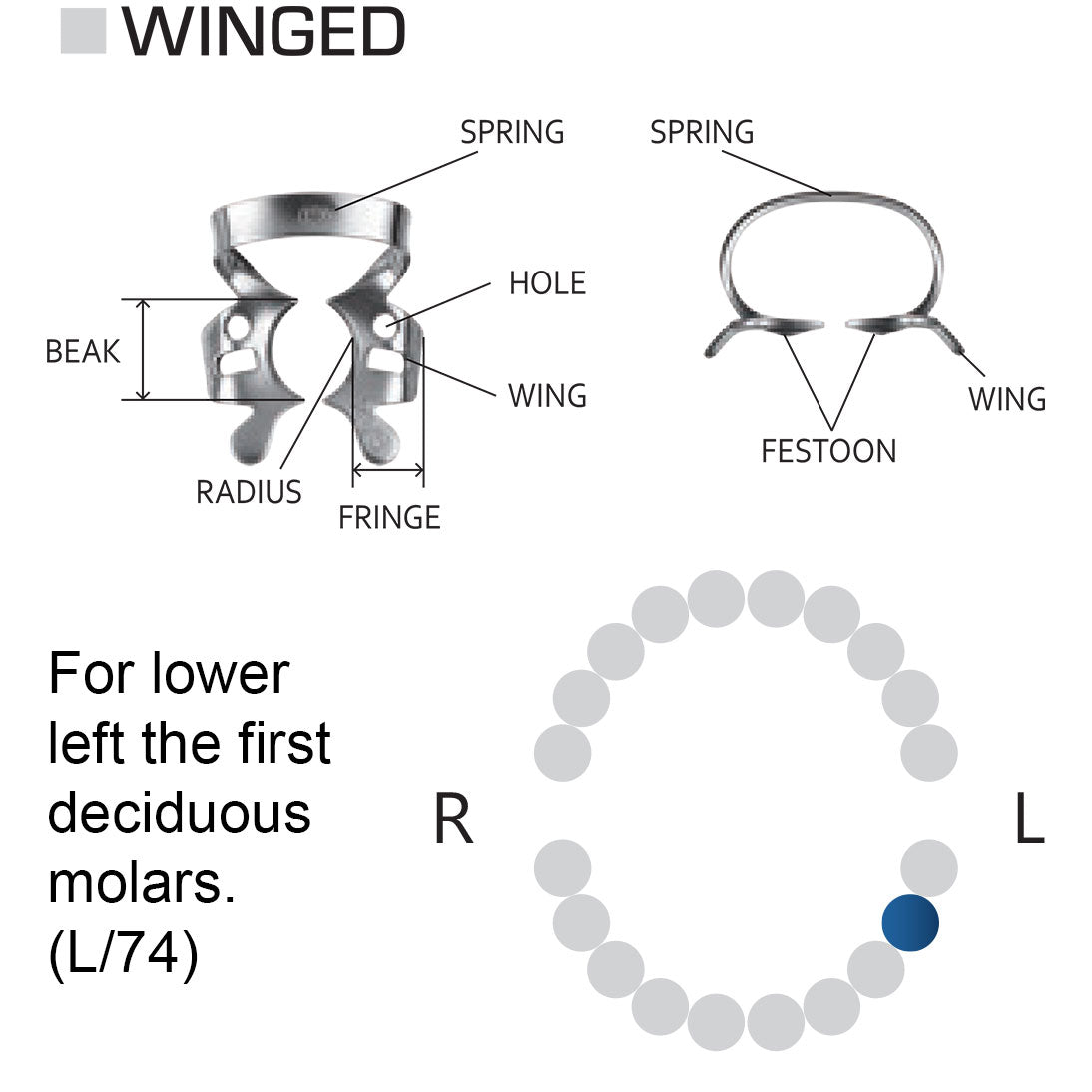 Los clamps pediátricos de Dentech-KSK están diseñados exclusivamente para el aislamiento dental en pacientes pediátricos. Son ideales para procedimientos de endodoncia y rehabilitación en dientes temporales, permitiendo una fijación segura, cómoda y precisa sobre piezas de menor tamaño.