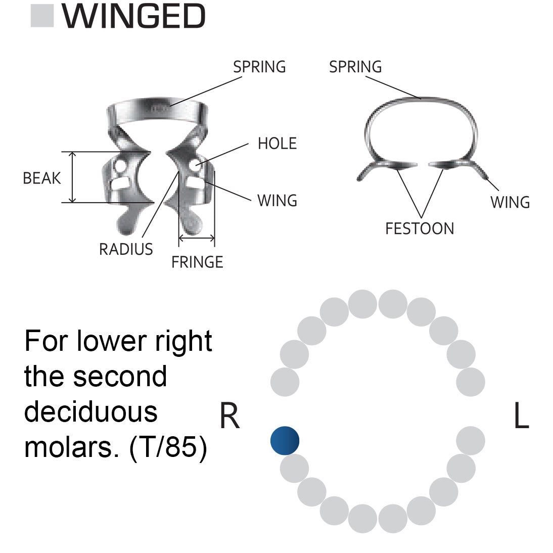 Para segundo molar temporal inferior lado derecho. Con alas.