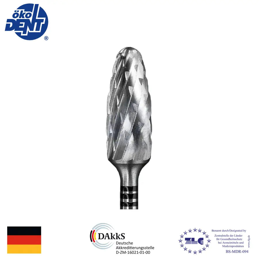 Los fresones de carburo-tungsteno OekoDent están fabricados con una aleación de carburo de tungsteno, conocida por su extrema dureza y durabilidad. Son ideales tanto para desgaste agresivo como para pulido fino, dependiendo del diseño del corte. Disponibles en diversas formas y granulometrías, permiten trabajar con seguridad y precisión sobre una amplia gama de materiales: acrílicos, yesos, metales no preciosos y titanio, siendo especialmente útiles en la elaboración y ajuste de prótesis dentales.