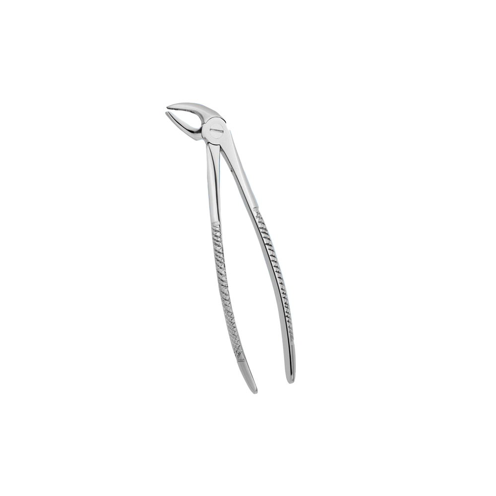 Fórceps pico de loro, curvo sobre el borde grueso, para molares inferiores.